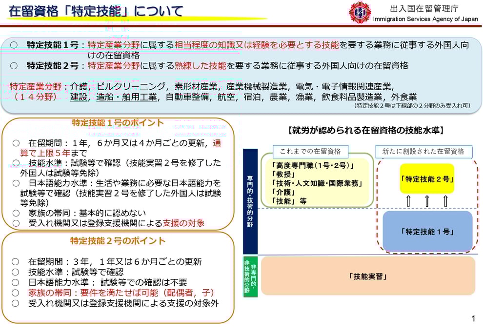Under the previous law, the status of residence was often difficult to obtain, such as "Professorship" or "Advanced Human Resources," but after the 2019 amendment, a new status of residence called "Specified Skills No. 1 and No. 2" was newly established.