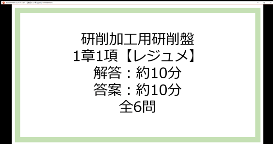 If you have opened the PowerPoint for the confirmation test, please print out the answer sheet for the confirmation test and perform all 6 questions in Chapter 1, Section 1 [Resume] for the grinding process first.